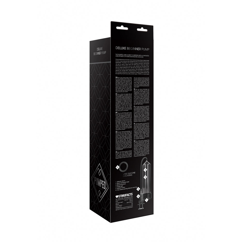Feel confident, connected, and relaxed with the innovative Deluxe Beginner Pump. Crafted with non-toxic, body-safe materials, Deluxe Beginner Pump promotes self-discovery, stress relief, and sexual confidence. Its ergonomic design and powerful vibrations enhance intimacy while supporting holistic wellness. Whether you're flying solo or connecting with a partner, Deluxe Beginner Pump is a perfect addition to your daily wellness routine. Deluxe Beginner PumpTHE PUMPED LINE IS HERE TO IMPRESS WITH A FANTASTIC ASSORTMENT OF PENIS ENHANCING DEVICES! With a total cylinder length of 23cm (9") and a diameter of 6cm (2.35"), this high-quality pump gives you ample possibilities to grow in both directions! The total length of the hose is 25cm (10") and the insertion sleeve is made of smooth Silicone. Surprise yourself every time on how big you can get! There is a transparent version and there are another three different colours to choose from: blue, red or black. This variant comes with sturdy finger grip pump and a quick release valve for your comfort!