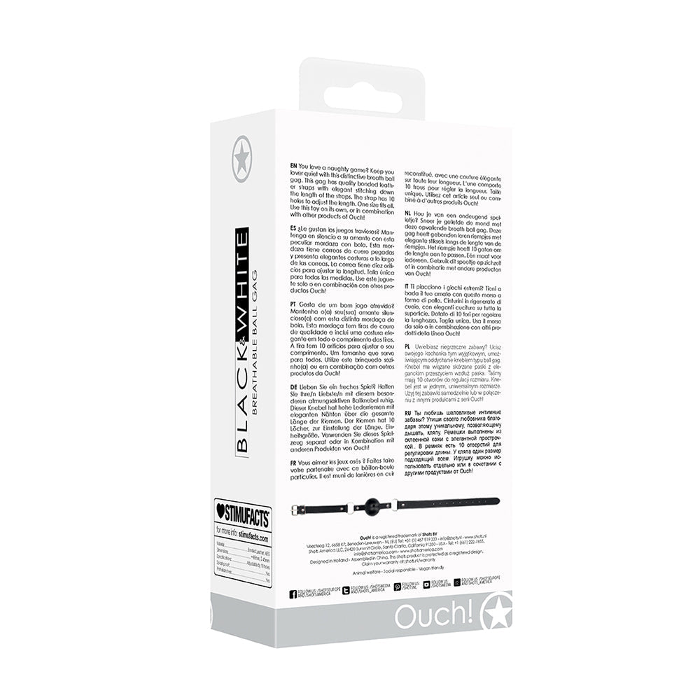 Ouch! Black & White Breathable Ball Gag With Bonded Leather Straps is designed to empower pleasure and support intimate well-being. Crafted with non-toxic, body-safe materials, Ouch! Black & White Breathable Ball Gag With Bonded Leather Straps promotes self-discovery, stress relief, and sexual confidence. Its ergonomic design and powerful vibrations enhance intimacy while supporting holistic wellness. Whether you're flying solo or connecting with a partner, Ouch! Black & White Breathable Ball Gag With Bonded Leather Straps is a perfect addition to your daily wellness routine. Ouch! Black & White Breathable Ball Gag With Bonded Leather StrapsYou love a naughty game? Keep you lover quiet with this distinctivebreath ball gag. This gag has quality leather straps with elegant stitching down the length of the straps. The strap has 10 holes to adjust the length. One size fits all. Use this toy on its own, or in combination with other products of Ouch!Breathable ball gagExperience incredible sensations with this toy from OuchIdeal for couples interested in kinky sex and BDSMPerfect for those who love to dominate or be dominatedBody-safe