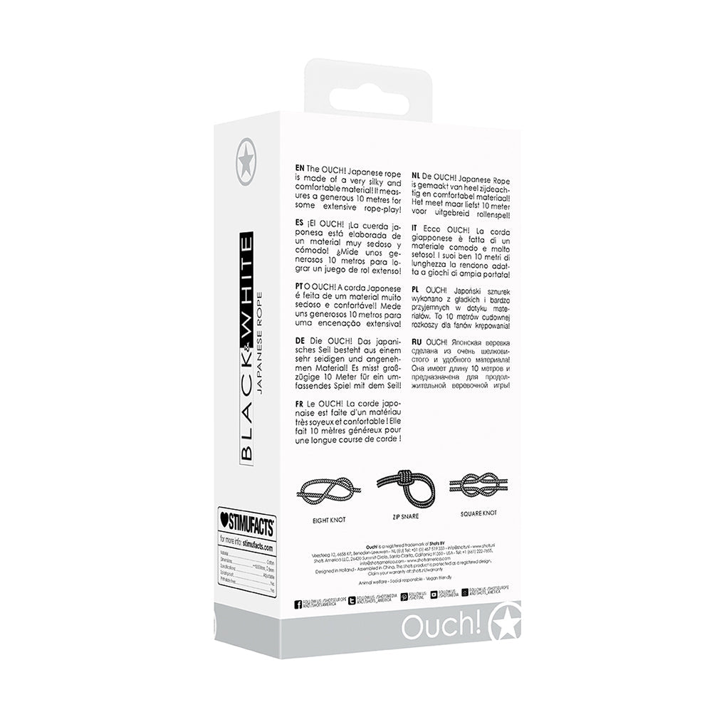 Feel confident, connected, and relaxed with the innovative Ouch! Black & White Japanese Rope. Crafted with non-toxic, body-safe materials, Ouch! Black & White Japanese Rope promotes self-discovery, stress relief, and sexual confidence. Its ergonomic design and powerful vibrations enhance intimacy while supporting holistic wellness. Whether you're flying solo or connecting with a partner, Ouch! Black & White Japanese Rope is a perfect addition to your daily wellness routine. Ouch! Black & White Japanese RopeThe OUCH! Japanese rope is made of a very silky and comfortable material! It measures a generous 10 metres for some extensive rope-play!Japanese ropemade of a very silky and comfortable material10 metresrope-play