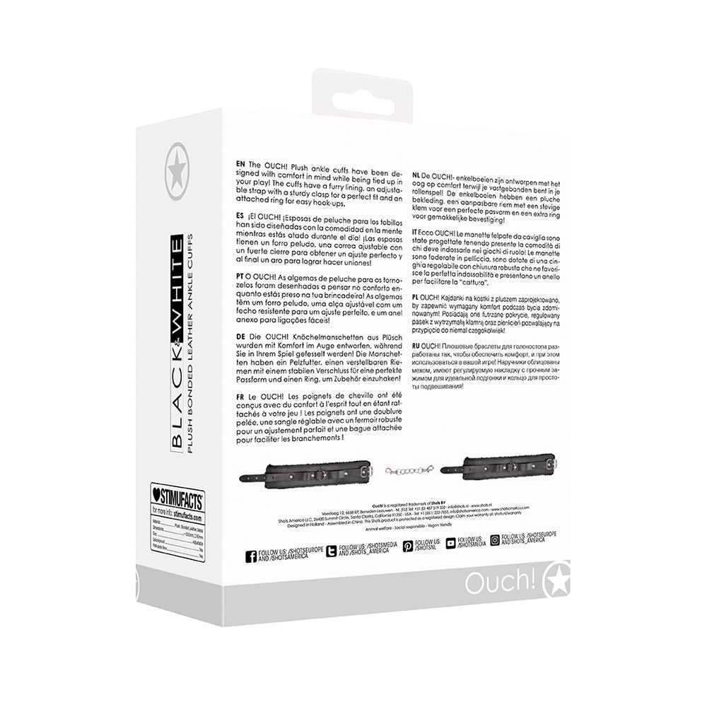 Enhance your sexual wellness journey with the expertly crafted Ouch! Black & White Plush Bonded Leather Ankle Cuffs With Adjustable Straps. Crafted with non-toxic, body-safe materials, Ouch! Black & White Plush Bonded Leather Ankle Cuffs With Adjustable Straps promotes self-discovery, stress relief, and sexual confidence. Its ergonomic design and powerful vibrations enhance intimacy while supporting holistic wellness. Whether you're flying solo or connecting with a partner, Ouch! Black & White Plush Bonded Leather Ankle Cuffs With Adjustable Straps is a perfect addition to your daily wellness routine. Ouch! Black & White Plush Bonded Leather Ankle Cuffs With Adjustable StrapsThe OUCH! Plush ankle cuffs have been designed with comfort in mind while being tied up in your play! The cuffs have a furry lining, an adjustable strap with a sturdy clasp for a perfect fit and an attached ring for easy hook-upsattached ring for easy hook-upscomfortableadjustable strapsturdy claspperfect fit