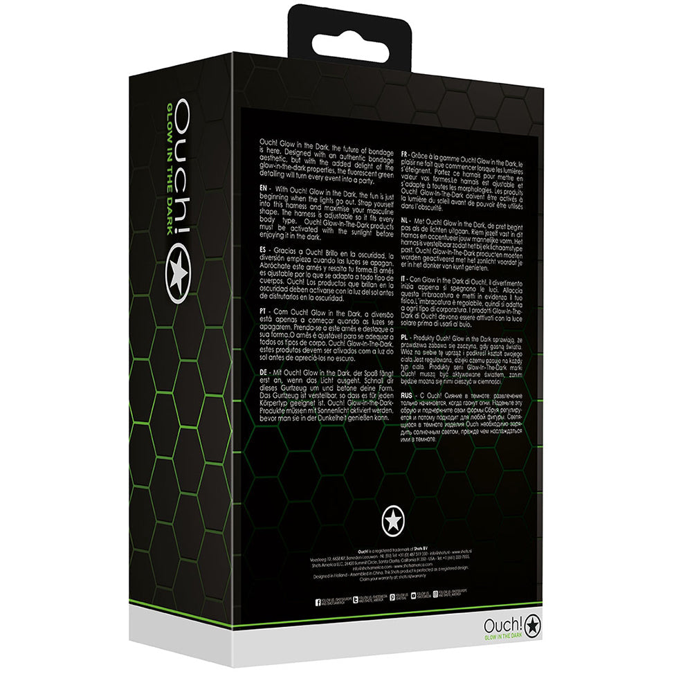 Ouch! Buckle Bulldog Harness is designed to empower pleasure and support intimate well-being. Crafted with non-toxic, body-safe materials, Ouch! Buckle Bulldog Harness promotes self-discovery, stress relief, and sexual confidence. Its ergonomic design and powerful vibrations enhance intimacy while supporting holistic wellness. Whether you're flying solo or connecting with a partner, Ouch! Buckle Bulldog Harness is a perfect addition to your daily wellness routine. Ouch! Buckle Bulldog HarnessOuch! Glow in the Dark, the future of bondage is here. Designed with an authentic bondage aesthetic, but with the added delight of the glow-in-the-dark properties, the fluorescent green detailing will turn every event into a part. With Ouch! Glow in the Dark, the fun is just beginning when the lights go out. Strap yourself into this harness and maximise your masculine shape. The harness is adjustable so it fits every body type. Ouch!?Glow-In-The-Dark?products must be activated with the sunlight before enjoying it in the dark.Ouch! Glow in the Dark, the future of bondage is here.Available in size S/M and L/XLDesigned with an authentic bondage aesthetic, but with the added delight of the glow-in-the-dark properties, the fluorescent green detailing will turn every event into a part.Ouch!?Glow-In-The-Dark?products must be activated with the sunlight before enjoying it in the dark.With Ouch! Glow in the Dark, the fun is just beginning when the lights go out.