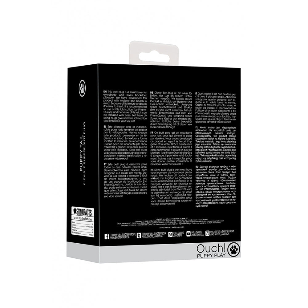 Prioritize your pleasure and health with the luxurious Ouch! Flexible Rubber Butt Plug. Crafted with non-toxic, body-safe materials, Ouch! Flexible Rubber Butt Plug promotes self-discovery, stress relief, and sexual confidence. Its ergonomic design and powerful vibrations enhance intimacy while supporting holistic wellness. Whether you're flying solo or connecting with a partner, Ouch! Flexible Rubber Butt Plug is a perfect addition to your daily wellness routine. Ouch! Flexible Rubber Butt PlugThis butt plug is a must have for everybody who loves backdoor pleasure. We have developed this product with hygiene and health in mind. Because of its texture and form it's easy to insert. It is recommended to use a little lubrication (by PharmQuests) and because of its tail, it can be released with ease. Let these alluring plugs give ultimate satisfaction and enhance your sex life!Enjoy role playing in style and make sure to teach your puppy lots of new tricks.Send your partner to obedience school with the Ouch! Puppy Play product line.Let these alluring plugs give ultimate satisfaction and enhance your sex life!We have developed this product with hygiene and health in mind.Because of its texture and form it's easy to insert.