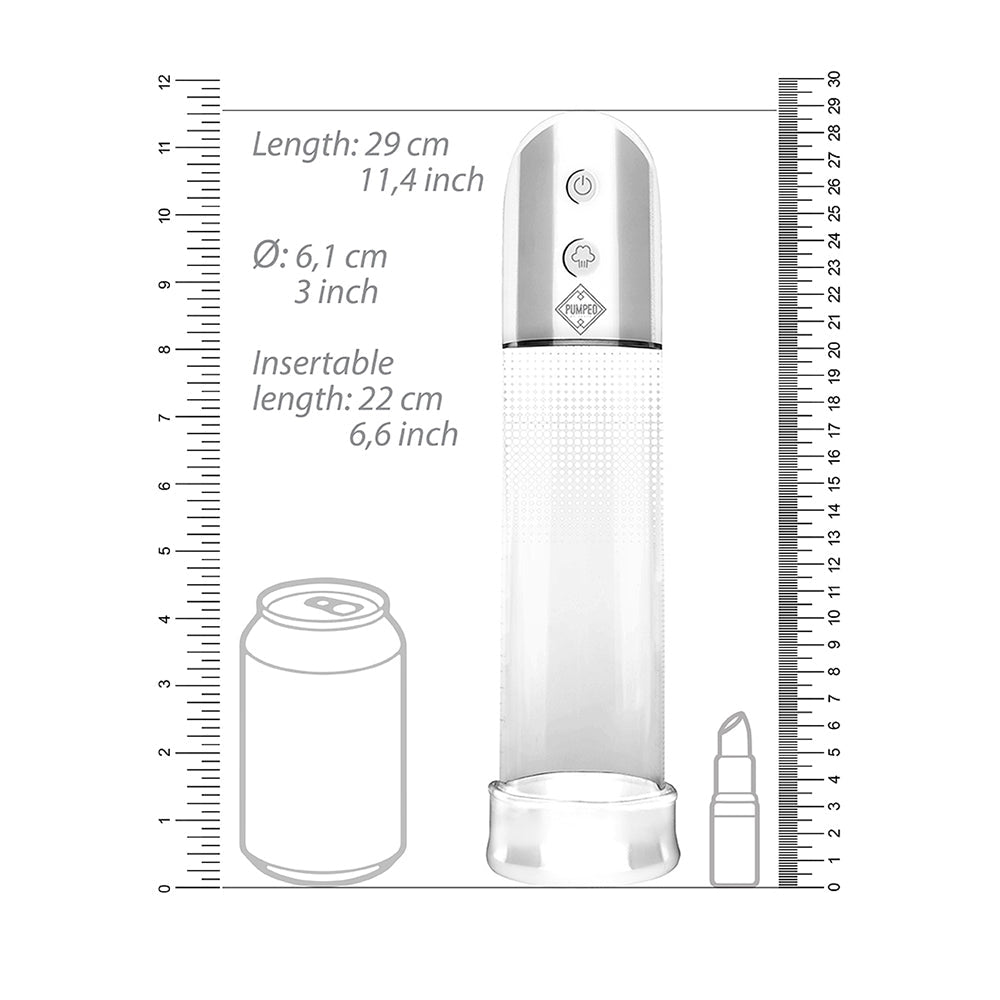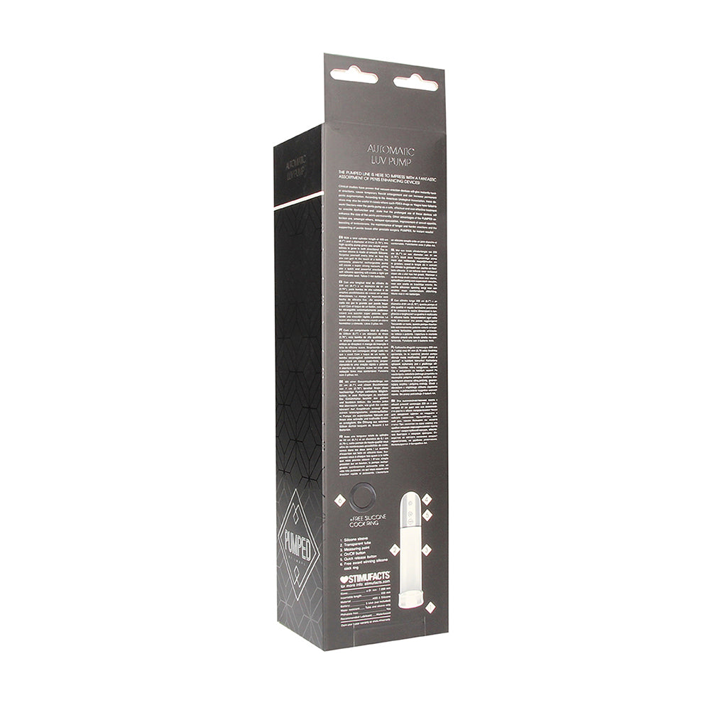 Pumped Automatic Luv Pump is designed to empower pleasure and support intimate well-being. Crafted with non-toxic, body-safe materials, Pumped Automatic Luv Pump promotes self-discovery, stress relief, and sexual confidence. Its ergonomic design and powerful vibrations enhance intimacy while supporting holistic wellness. Whether you're flying solo or connecting with a partner, Pumped Automatic Luv Pump is a perfect addition to your daily wellness routine. Pumped Automatic Luv Pump "With a total cylinder length of 20 cm (7.8"") and a inner diameter of 6 cm (2.36""), this high-quality pump gives you ample possibilities to grow in both directions! The insertion sleeve is made of smooth Silicone. Surprise yourself every time on how big you can get! At the touch of a button the extremely powerful pump will create a super-strong vacuum, giving you a quick and powerful erection. The soft silicone opening will create a tight yet comfortable seal. Takes 2 AA batteries (not included). Clinical studies have proven that vacuum erection devices will give instantly harder erections, cause temporary flaccid enlargement and can increase permanent penis augmentation. According to the American Urological Association, these devices may also be useful in cases where such PDE5 drugs as Viagra have failed to work! Doctors view the penis pump as a safe, effectual and cost effective treatment for erectile dysfunction and state that the prolonged use of these devices will enhance the size of the penis permanently. Other advantages of the PUMPED selection are, amongst others, delayed ejaculation, improvement of sexual appetite, boosting of testosterone, the maintenance of longer and harder erections and the supporting of penile tissue after prostate surgery. PUMPED, for instant results! This high-quality pump gives you ample possibilities to grow in both directions! At the touch of a button the extremely powerful pump will create a super-strong vacuum, giving you a quick and powerful erection. The soft silicone opening will create a tight yet comfortable seal. Takes 2 AA batteries (not included). The cylinder length is 20 cm (7.8") and the inner diameter 6 cm (2.36")
