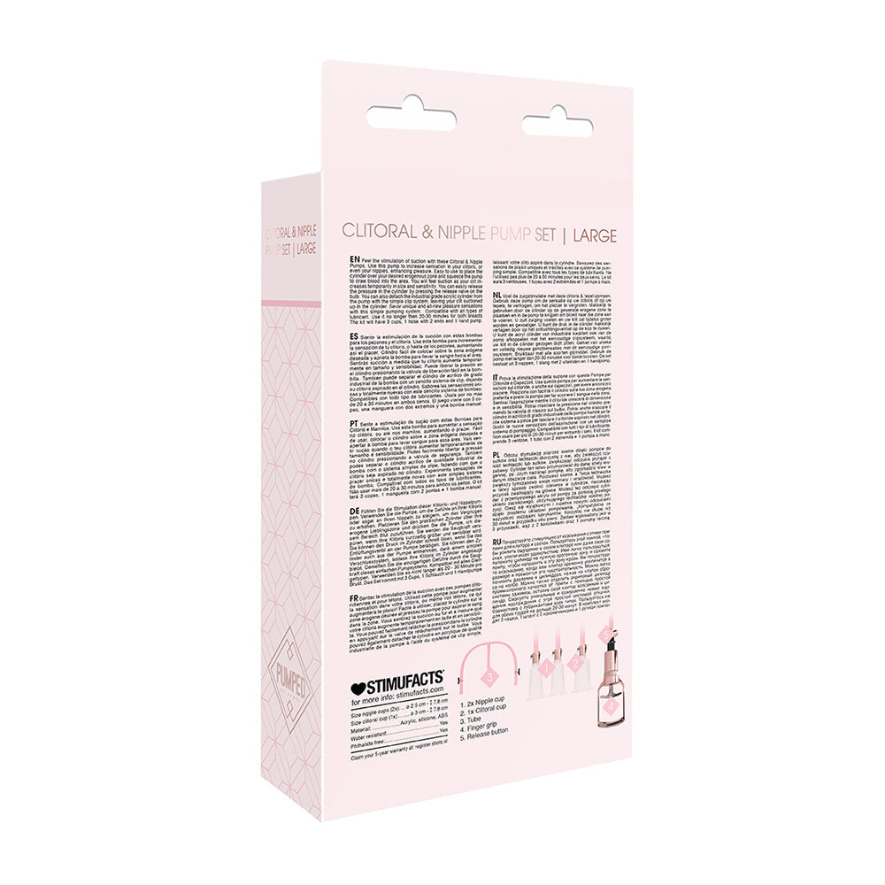 Pumped Clitoral & Nipple Pump Set is designed to empower pleasure and support intimate well-being. Crafted with non-toxic, body-safe materials, Pumped Clitoral & Nipple Pump Set promotes self-discovery, stress relief, and sexual confidence. Its ergonomic design and powerful vibrations enhance intimacy while supporting holistic wellness. Whether you're flying solo or connecting with a partner, Pumped Clitoral & Nipple Pump Set is a perfect addition to your daily wellness routine. Pumped Clitoral & Nipple Pump SetFeel the stimulation of suction with these Clitoral & Nipple Pumps. Use this pump to increase sensation in your clitoris, or even your nipples, enhancing pleasure. Easy to use to place the cylinder over your desired erogenous zone and squeeze the pump to draw blood into the area. You will feel suction as your clit in- creases temporarily in size and sensitivity. You can easily release the pressure in the cylinder by pressing the release valve on the bulb. You can also detach the industrial grade acrylic cylinder from the pump with the simple clip system, leaving your clit suctioned up in the cylinder. Savor unique and all-new pleasure sensations with this simple pumping system. Compatible with all types of lubricant. Use it no longer then 20-30 minutes for both breasts The kit will have 3 cups, 1 hose with 2 ends and 1 hand pump.