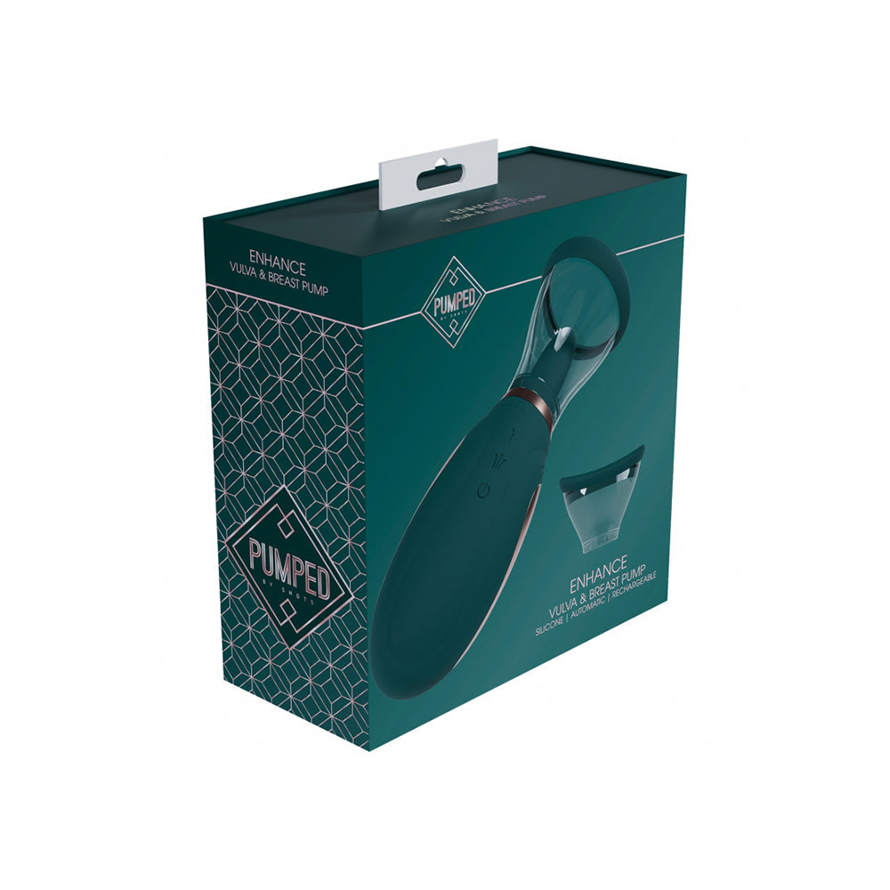 Discover body-safe bliss and mindful self-care with Pumped Enhance Automatic 13-Speed Silicone Rechargeable Vulva & Breast Pump. Crafted with non-toxic, body-safe materials, Pumped Enhance Automatic 13-Speed Silicone Rechargeable Vulva & Breast Pump promotes self-discovery, stress relief, and sexual confidence. Its ergonomic design and powerful vibrations enhance intimacy while supporting holistic wellness. Whether you're flying solo or connecting with a partner, Pumped Enhance Automatic 13-Speed Silicone Rechargeable Vulva & Breast Pump is a perfect addition to your daily wellness routine. Pumped Enhance Automatic 13-Speed Silicone Rechargeable Vulva & Breast PumpPump to plump and ensure your sensitive areas are looking their best with the EXQUISITE Vulva & Breast pump by Shots. This high quality pump uses quick and efficient vacuum suction to help firm up and increase the size of your breasts and vulva, along with their sensitivity, making this the perfect accessory for pre-bedroom preparation. The cups are designed with a silky smooth, comfortable silicone seal, that prevents air or moisture from entering. To use, simply place the cup over the desired area, activate the function buttons, and let the sensations whisk you away. Works with all different breast sizes. Use it no longer then 20 -30 minutes for both breasts and/or vulva, and only pump to a comfortable feel. This kit contains 1 breast cup, 1 vulva cup and a 2 F1-motor powerful pump.