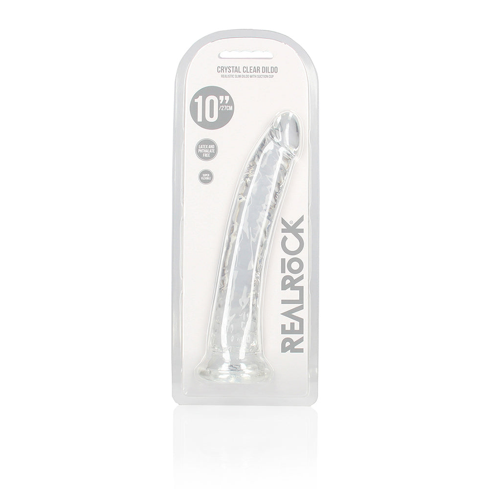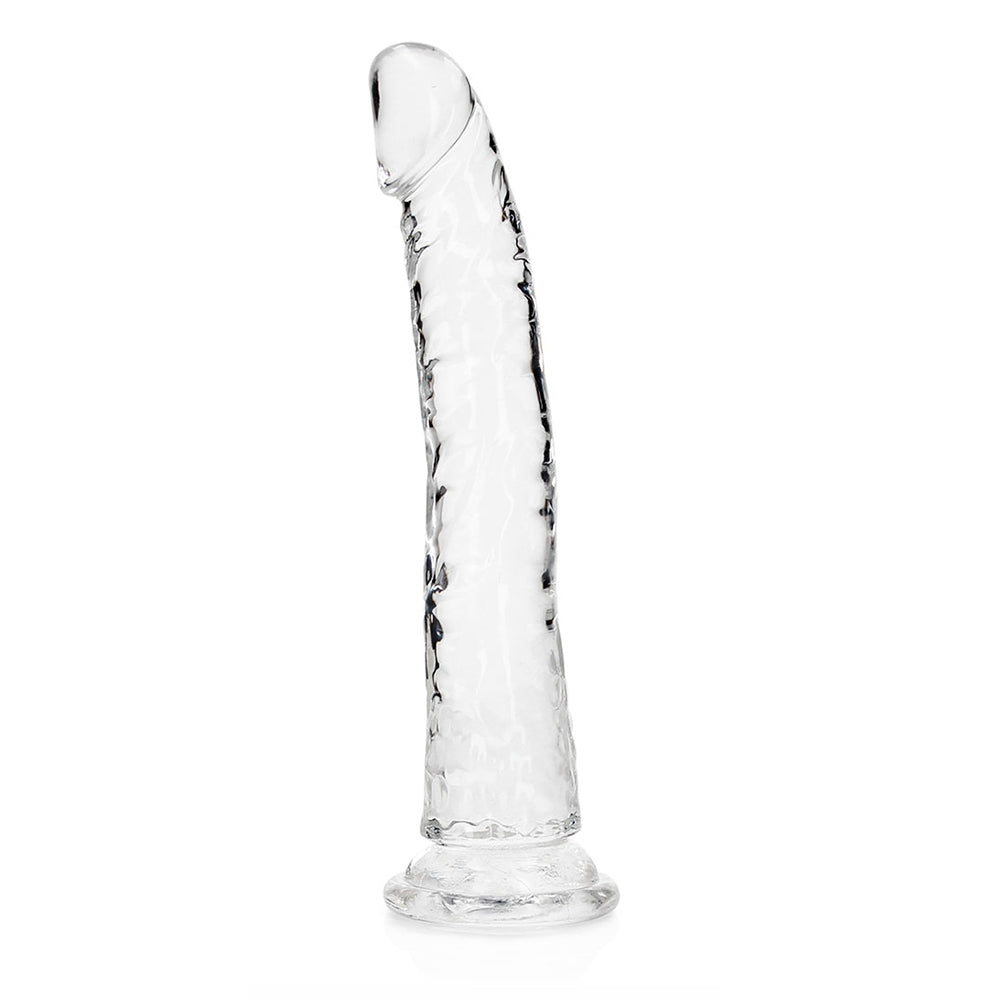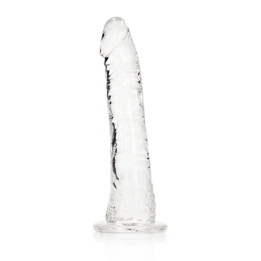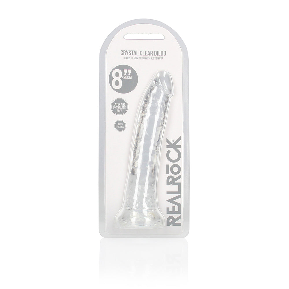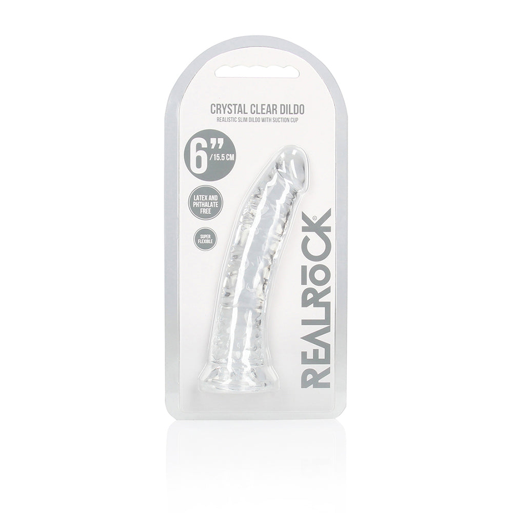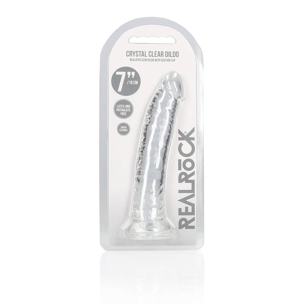 Discover body-safe bliss and mindful self-care with Realrock Crystal Clear Slim Dildo. Crafted with non-toxic, body-safe materials, Realrock Crystal Clear Slim Dildo promotes self-discovery, stress relief, and sexual confidence. Its ergonomic design and powerful vibrations enhance intimacy while supporting holistic wellness. Whether you're flying solo or connecting with a partner, Realrock Crystal Clear Slim Dildo is a perfect addition to your daily wellness routine. Realrock Crystal Clear Slim DildoReady for a CRYSTAL CLEAR orgasm? Reach your finest climax in style with these beautifully shaped, clear dildos. This dildo can see right through you and will know exactly how you like it. This dildo is suitable for anal and vaginal use! Finger-like precision stimulation, great for yummy anal stimulation, and definitely a clitoris friend? You’ll find all that and more in this dildo! The base functions as a suction cup for hands-free use, but also gives it the ability to be used in a harness. All REALROCK CRYSTAL CLEAR dildos are phthalate-free, latex-free, body-safe and non-porous which makes them easy-to-clean and gives them a longer lasting durability. This model stands 7” (17,8 cm) tall including the suction cup, has an insertable length of 6” (15,5 cm) and has a girth of 1.2” (3 cm).Reach your finest climax in style with these beautifully shaped, clear dildos.This dildo can see right through you and will know exactly how you like it.This dildo is suitable for anal and vaginal use!The base functions as a suction cup for hands-free use, but also gives it the ability to be used in a harness.Phthalate-free, latex-free, body-safe and non-porous